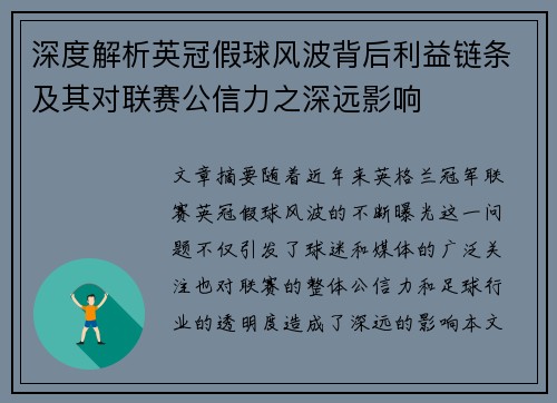 欧联杯冠军的未来之路与欧冠舞台新格局的崛起与挑战,是当前欧洲足球格局变化的重要话题。随着欧足联对于各大赛事的调整与改革,尤其是欧冠赛事的扩军和收入分配模式的变化,欧联杯冠军的含金量与重要性也迎来了新的...